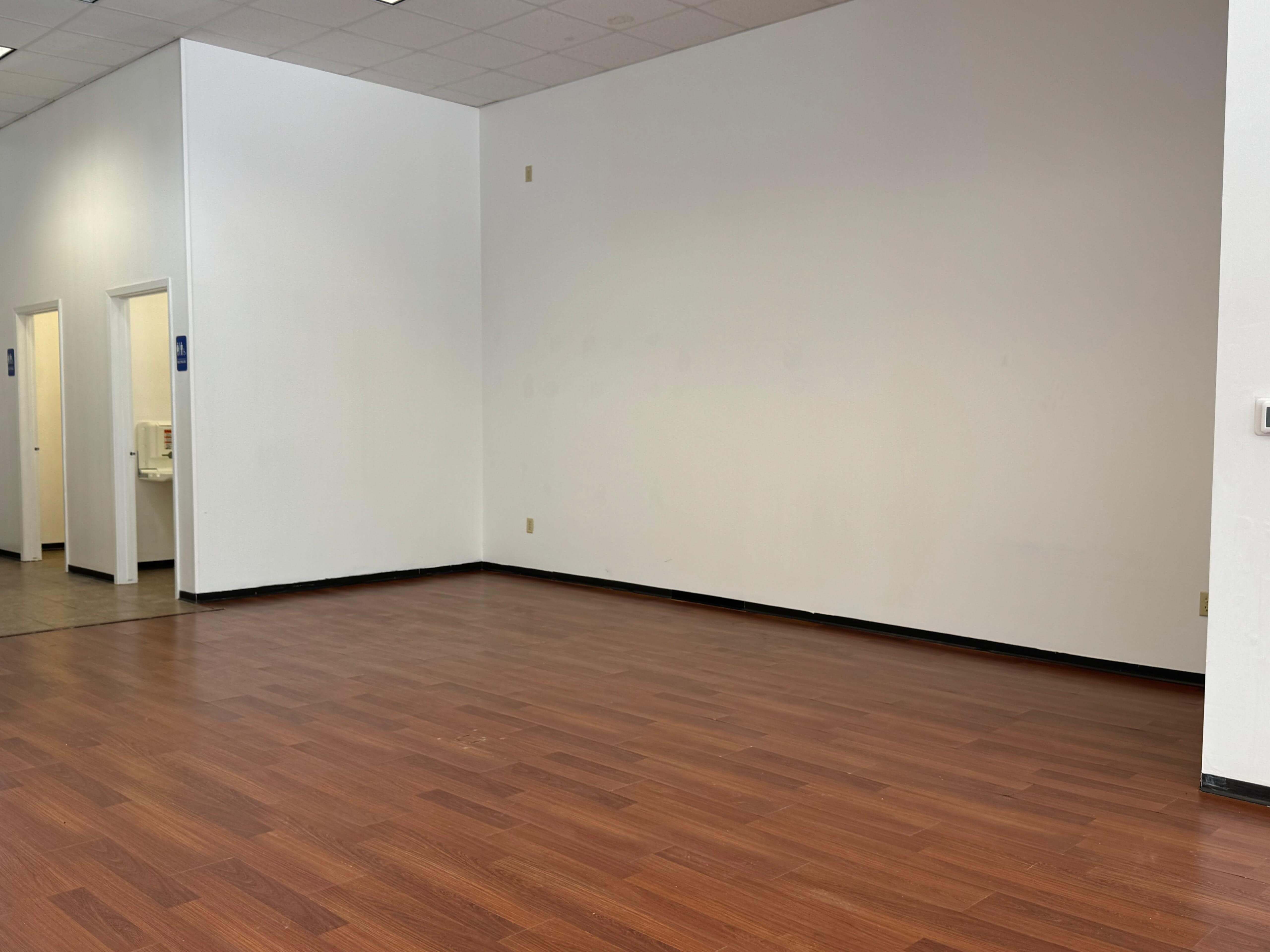 Clean, vacant, ready-to-move-in secondary space, formerly Kid's gym has a large open showroom and large secondary room lend to various use of the space. A mirrored wall at one end makes this an ideal use for a dance studio. A tinted window office overlooking the showroom, Coupled with a break room, and 2 ADA-compliant restrooms lends this space for a quick ready to move in space for tenants who wants to capture the fall enrollment of Hamilton Middle School across the street for dance classes or any other children oriented business. Full-height tinted glass windows; Ready to move in. 8:1000 parking ratio.